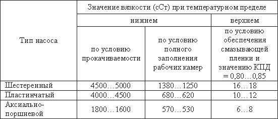 Максимальные и минимальные значения вязкости рабочих жидкостей в зависимости от типа насоса приведены в табл.2.1.