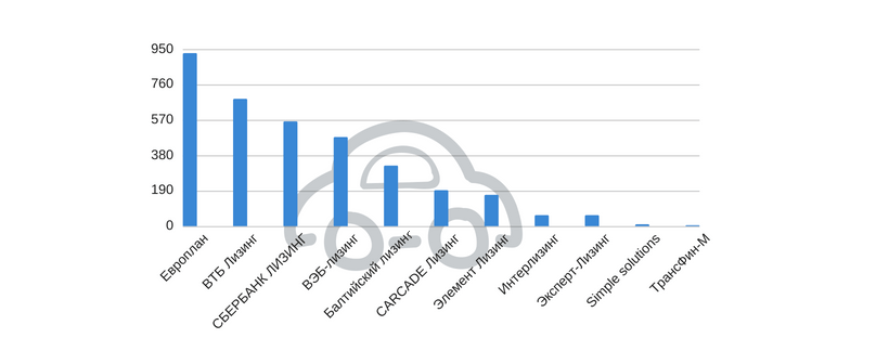 По данным исследования Эксперт РА «Рынок лизинга по итогам 2017 года: движение вверх», 66% всех договоров лизинга в 2017 были сконцентрированы в топ-10 лизинговых компаний, это компании (по расположению в рэнкинге): Государственная транспортная лизинговая компания, «СБЕРБАНК ЛИЗИНГ», «ВЭБ-лизинг», «ВТБ Лизинг», «ЛК «Европлан», «Трансфин-М», «Балтийский лизинг», «Сименс Финанс», «Альфа Лизинг», «РЕСО-Лизинг».