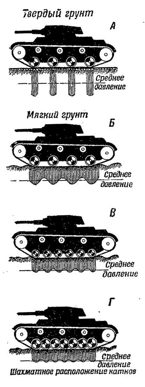 Таким образом, теоретически гусеницы обеспечивают меньшее давление на грунт в фунтах на квадратный дюйм (PSI), чем шины. Точки контакта колес тележки и ведущих колес несколько увеличивают это значение.
