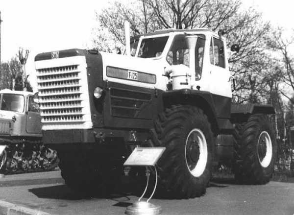 [~DETAIL_TEXT] =>В 1965 году тракторный завод в Харькове освоил мелкосерийное производство новой колесной машины трехтонного класса, разработка которой началась еще в 1959 году. Первые партии машин для испытаний в различных условиях появились еще в начале 1962 года. Инициатором создания таких тракторов стал Н. С. Хрущев, который увидел подобную технику во время своего визита в США. Новая машина была создана под руководством главного конструктора завода ХТЗ А. А. Сошникова и получила обозначение Т-125. Одной из основных черт такой техники стало сочетание характеристик скоростного трактора с повышенной проходимостью и тягача.